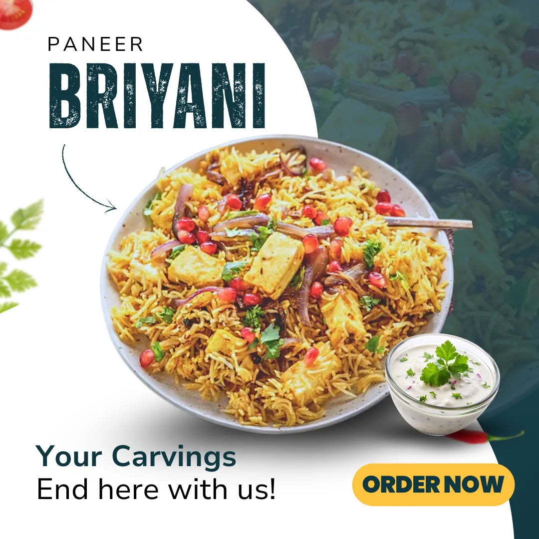 Wholesome biryani with succulent paneer, fragrant basmati rice, and a medley of aromatic spices.